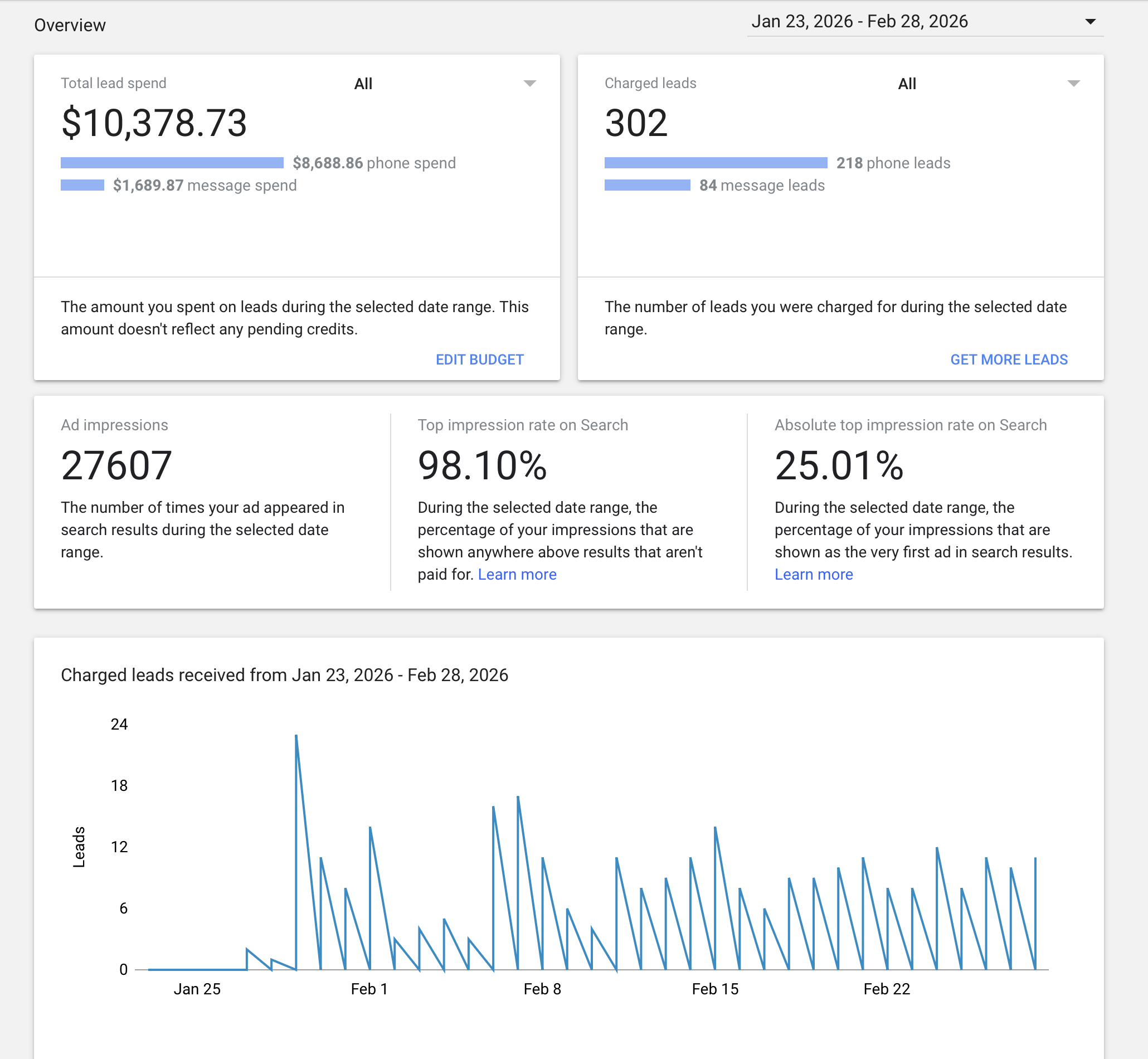 For appliance repair companies, Google visibility is often the primary driver of customer inquiries. Once the suspension issues were resolved and the campaigns were properly configured, the lead flow returned and the business was able to operate at full capacity.